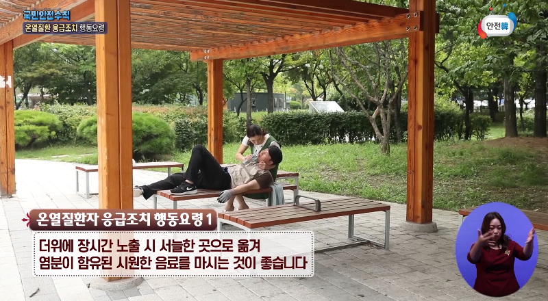 - 염분이 포함된 시원한 물 섭취 (주류/카페인 음료는 금지)