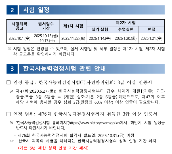 제2차 시험 | 2026년 1월 14일(수), 1월 20일(화), 1월 21일(수) |